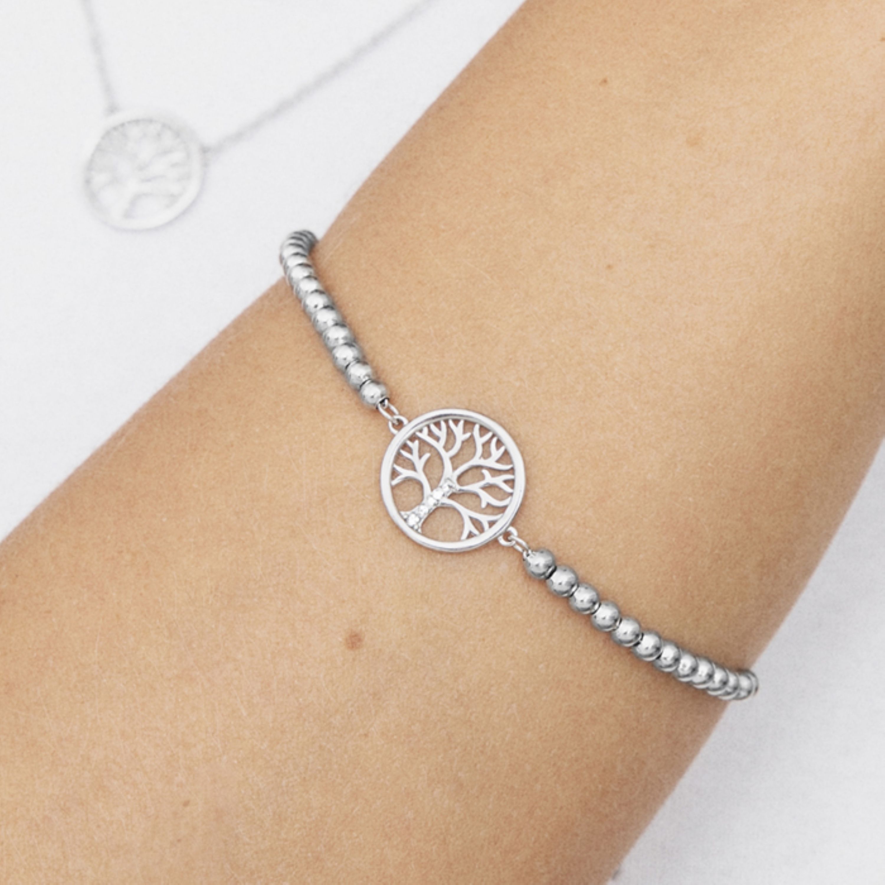 Pulsera arbol vida de plata de ley 925 y circonita brillante con acabado en baño de rodio. Pide un deseo se caracteriza por diseños de carácter joven, repletos de significado y color, originales a la vez que discretos, que pretenden convertirse en pequeños amuletos.