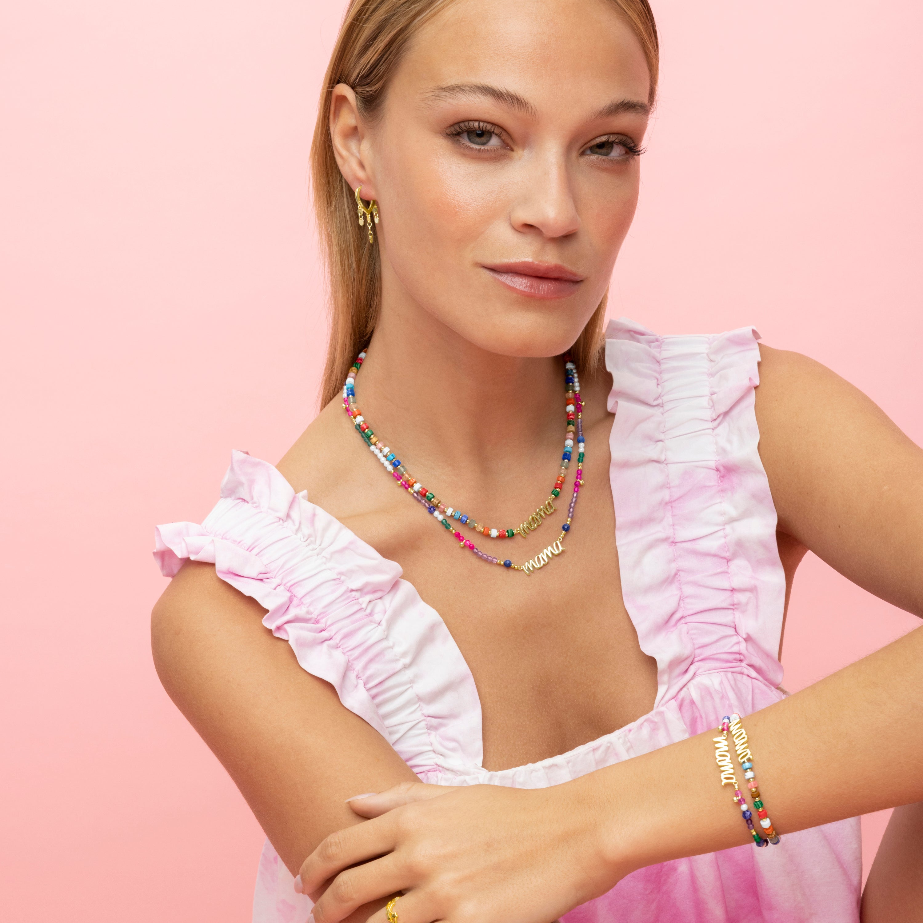 Pulsera de Plata de Ley 925 y Cristal Multicolor acabada en oro amarillo de 18k - Mama