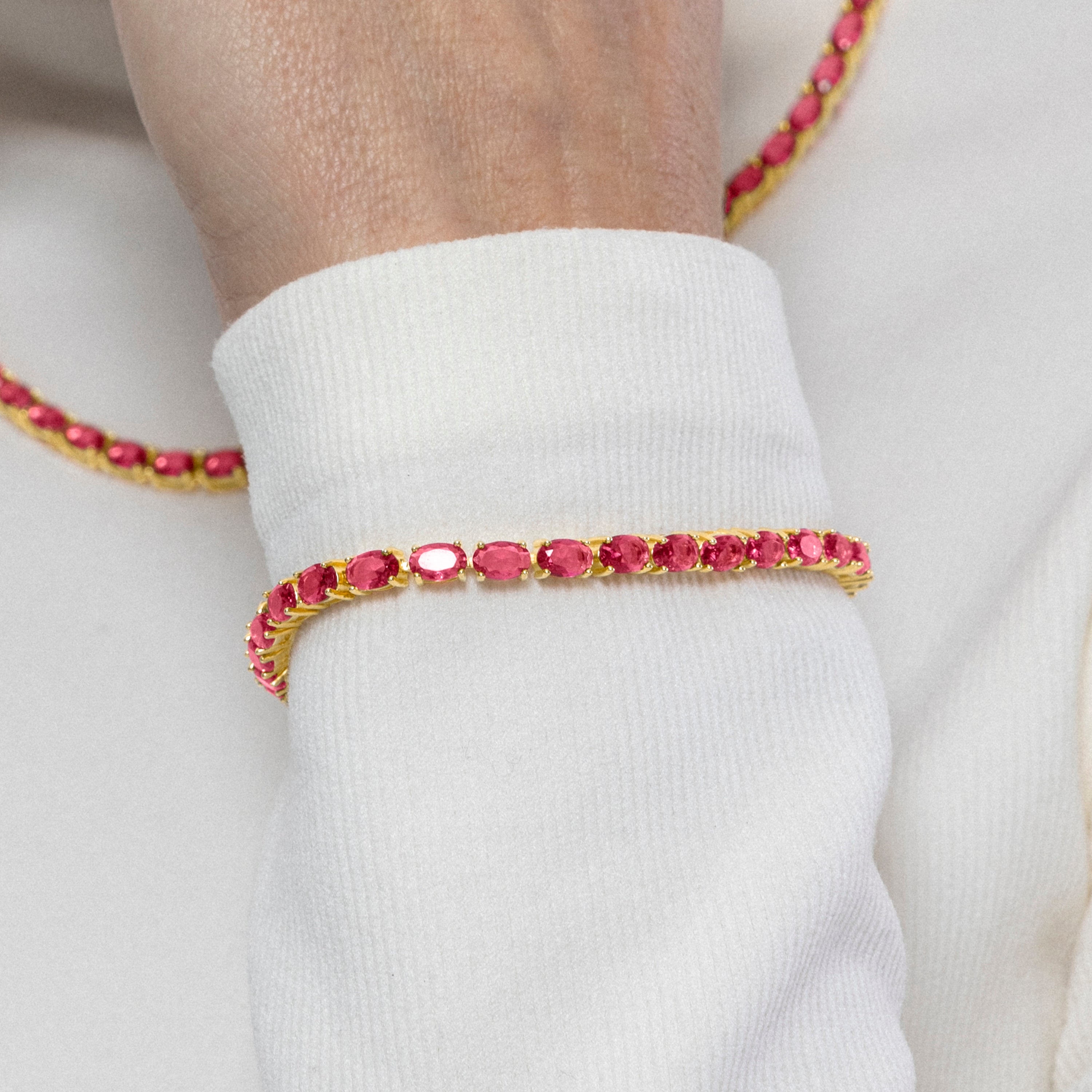 Pulsera de Plata de Ley 925 y Cuarzo Hidrotermal Frambuesa acabada en oro amarillo de 18k - Synaroz