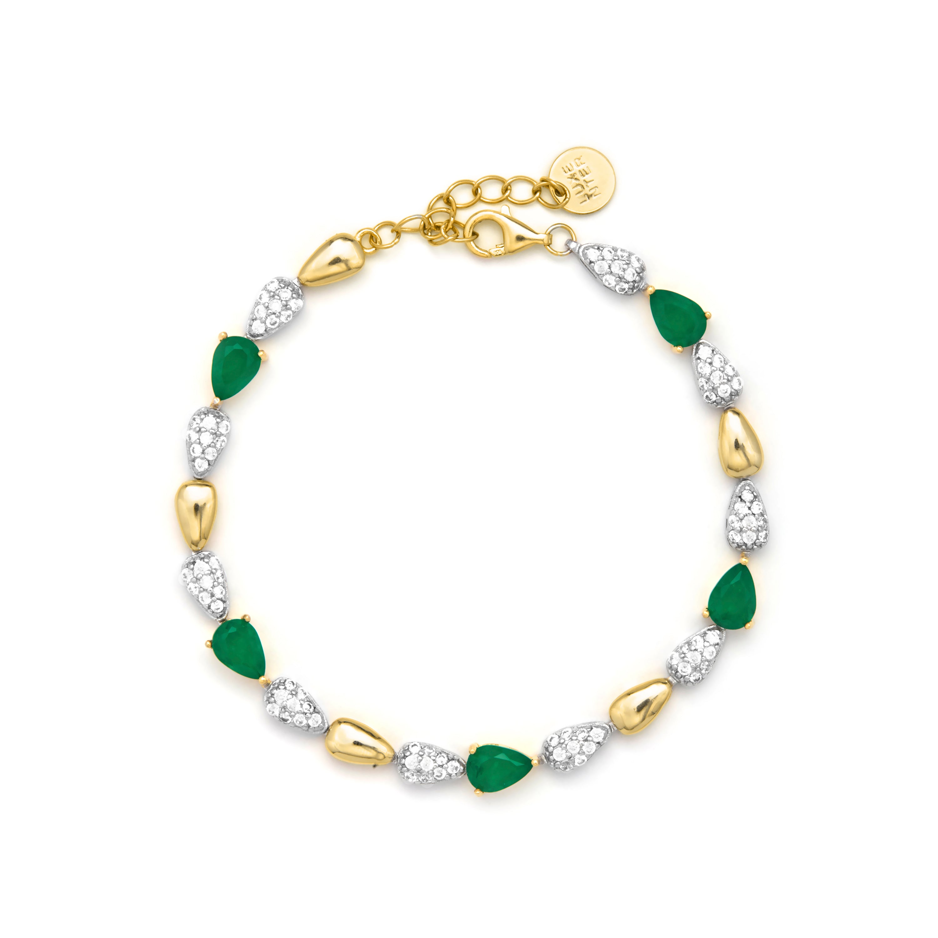 Pulsera de Plata de Ley 925 y Cuarzo Hidrotermal Verde Paraiba acabado en oro amarillo 18k - Udruko