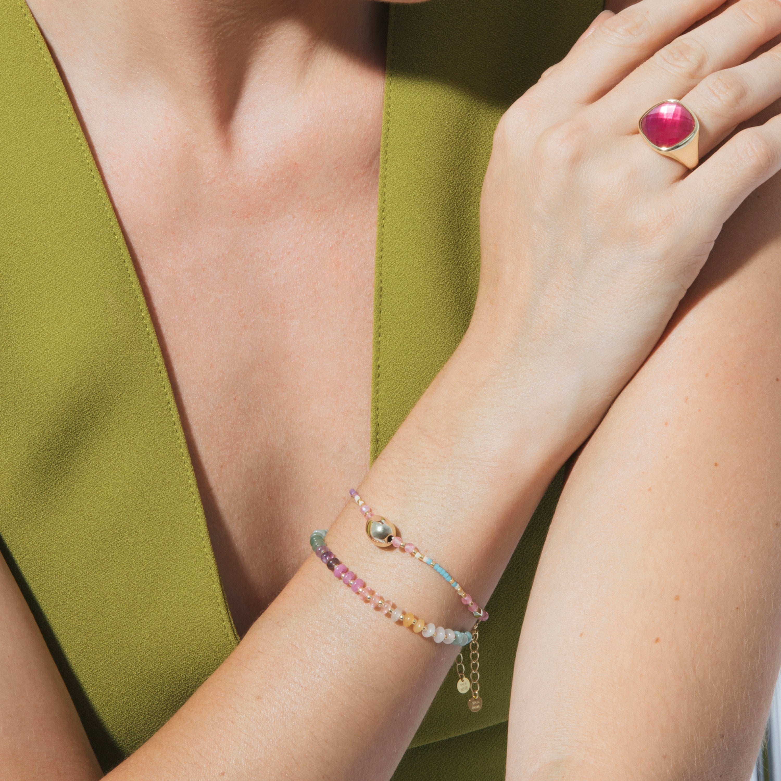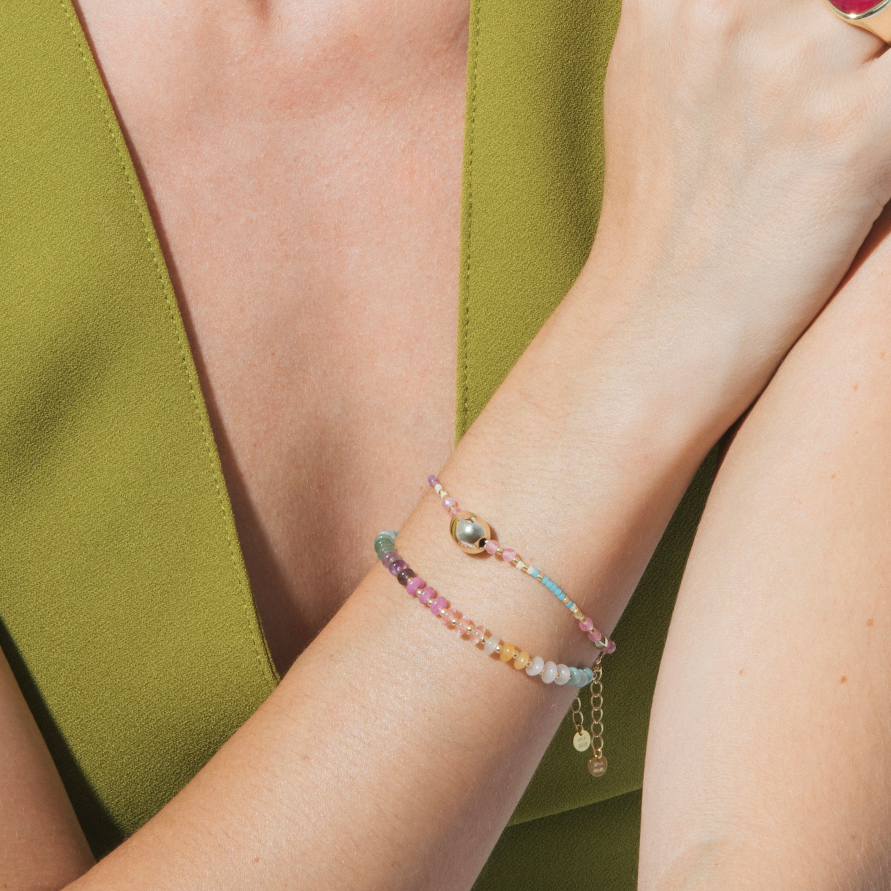 Pulsera de Plata de Ley 925 y Multicolor Piedra Natural acabado en oro amarillo de 18k - Uwa
