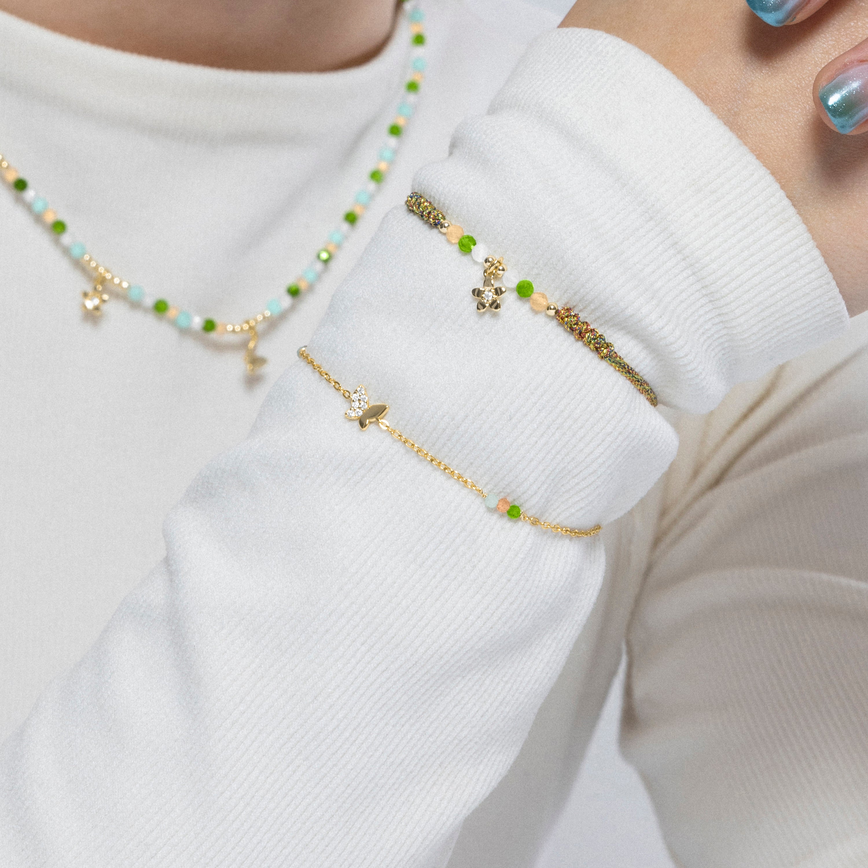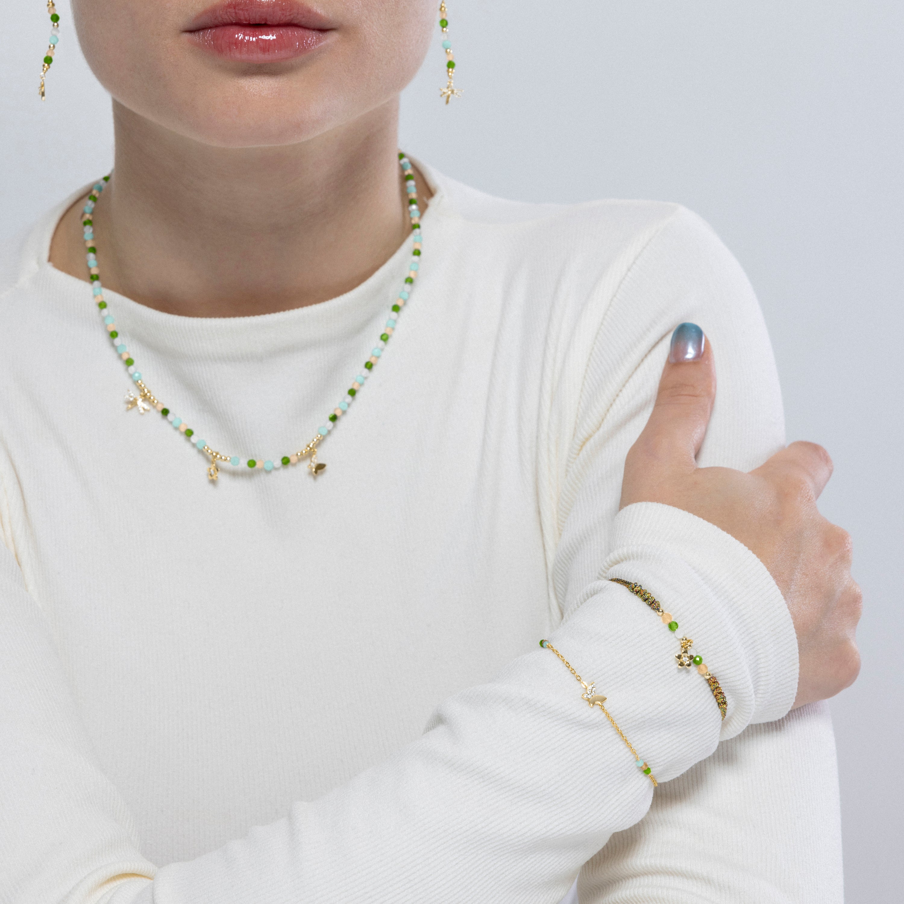 Pulsera de Plata de Ley 925 y Cristal Verde acabada en oro amarillo de 18k - Yton