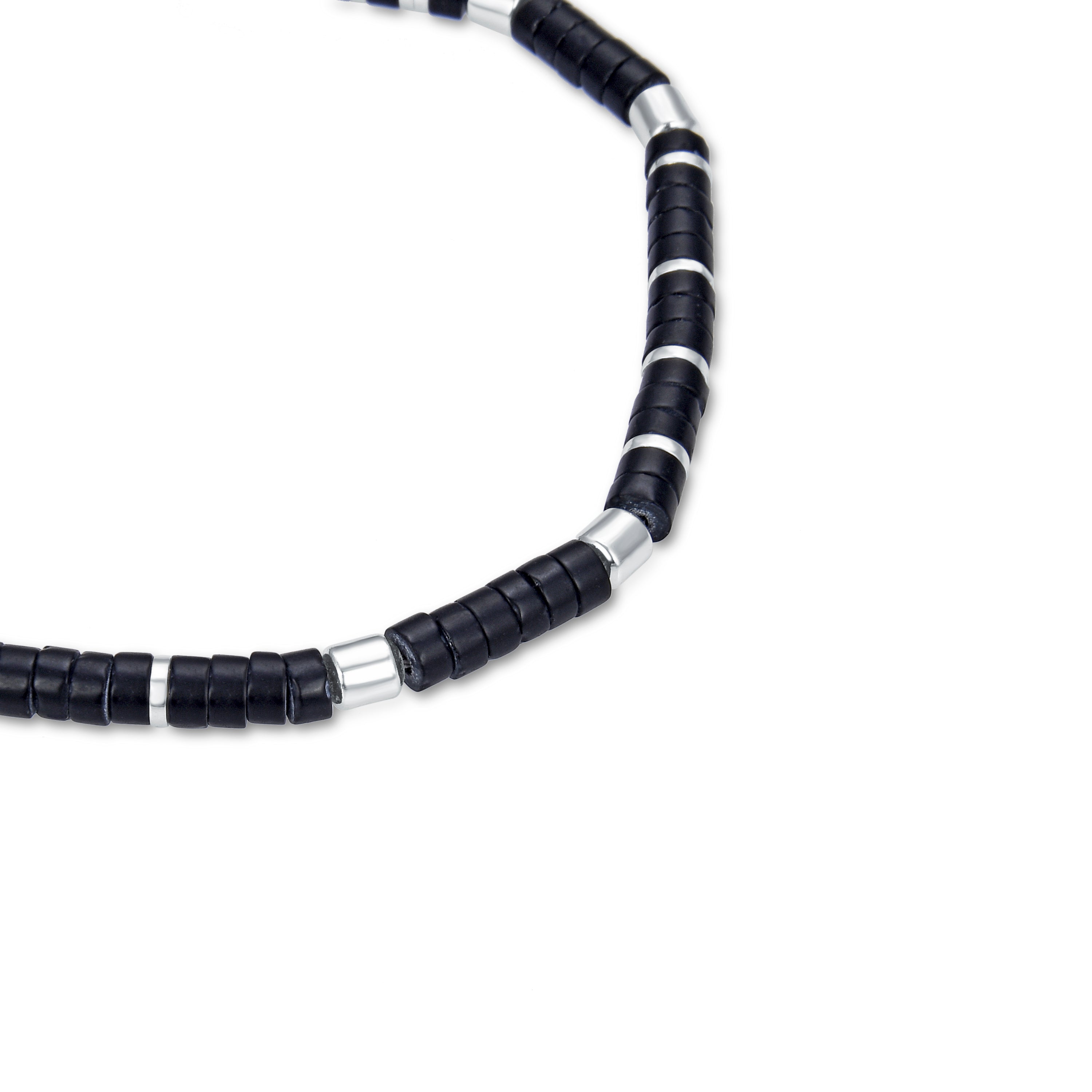 Pulsera Zadir de acabado en Rodio y Onix. Es momento de conocer la mayor virtud de este diseño: el poder transformar un look clásico en una propuesta cargada de carácter y personalidad. Diseños realizados cuidadosamente a mano con materiales de primera calidad. El eclecticismo nunca ha sido tan libre y valiente como en esta colección. Arrebatos psicodélicos se agitan para dar paso a joyas que van dejando rastro de excentricidades que van más allá del gusto por las joyas sofisticadas, que dictan sentencia convirtiéndose en piezas clave, el detalle que la eleva: (R)evolución.