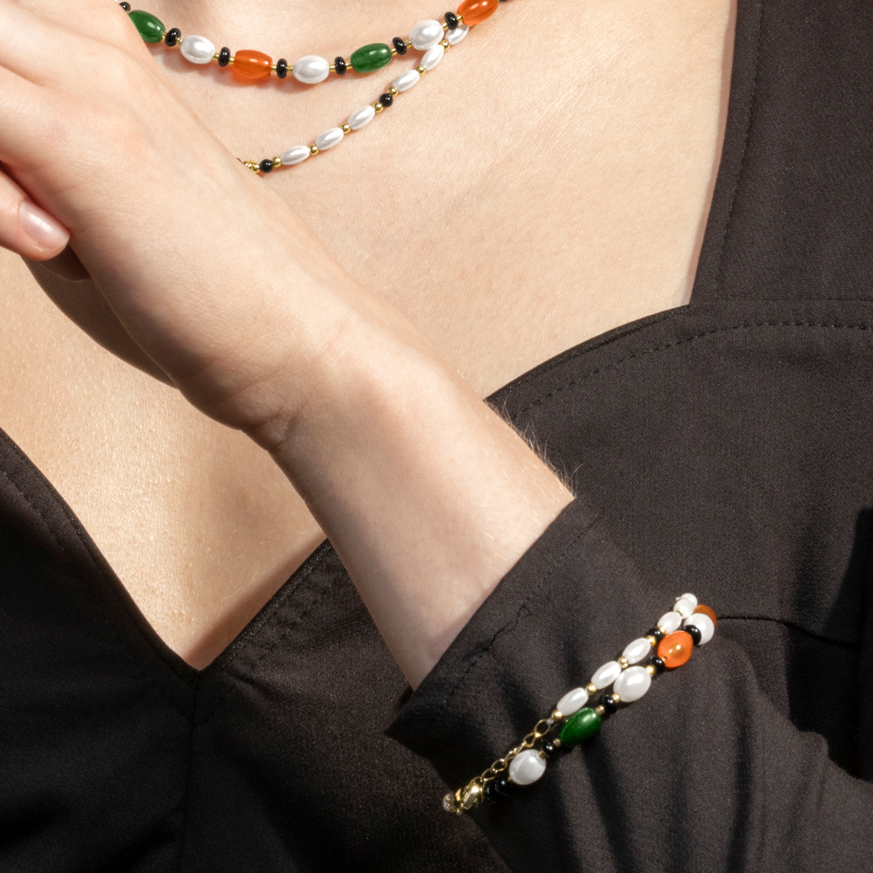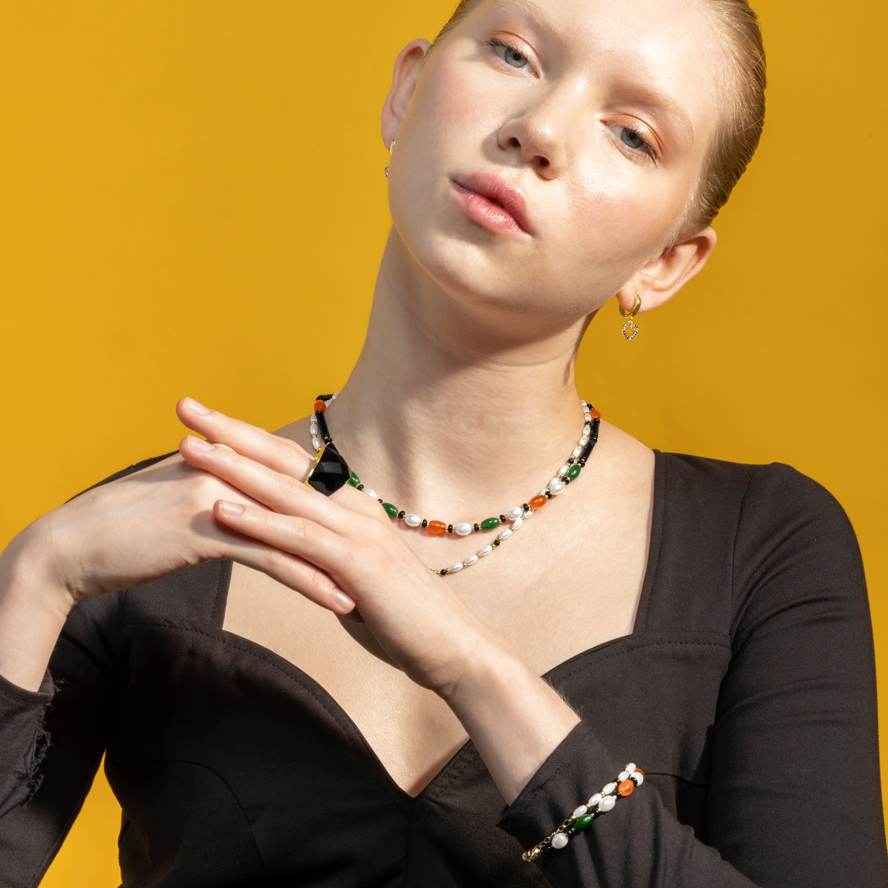 Pulsera de metal Zizi con Perla Blanca acabado oro 18k. El estilo Boho es una estética de espíritu libre que mezcla diferentes culturas y expresiones artísticas en un estilo ecléctico con énfasis en los elementos orgánicos y la naturaleza.