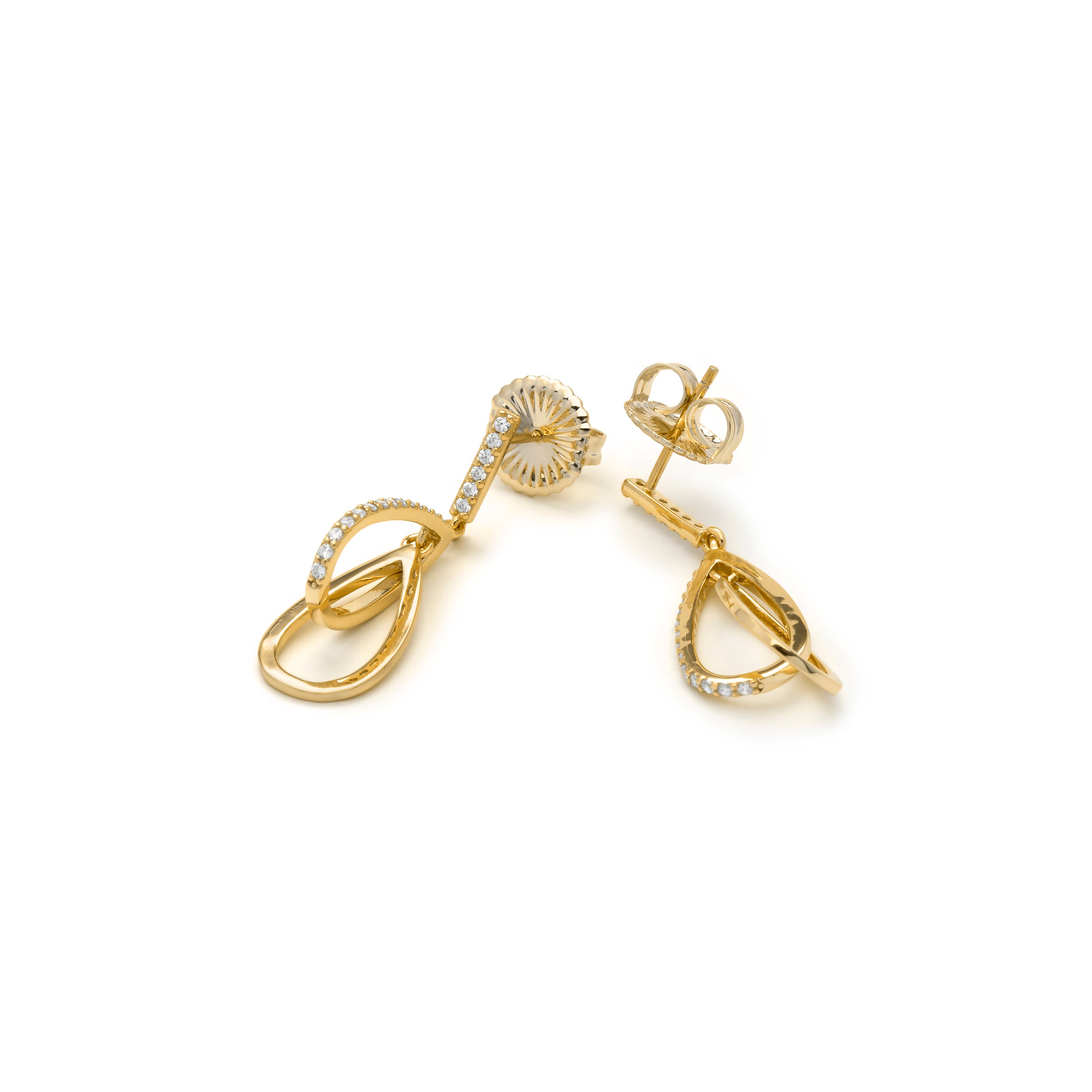 Pendientes Garfu de Plata de Ley 925 y Circonita Brillante acabado en oro amarillo 18k
